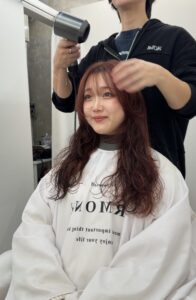 毛先はカールを指で包むようにしながら風を当てて乾かします。